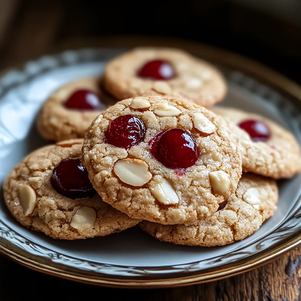 Soft butter cookies with chopped maraschino cherries, almond extract, and optional white chocolate chips for a delightful treat.
